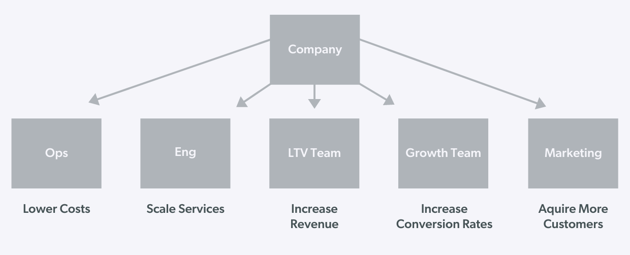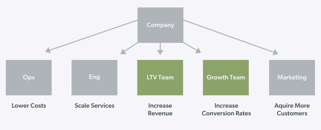 The LTV Team and the Customer Value Team have become two very distinct organisms, simply because of the name of the team and the type of metric chosen— i.e. a customer success metric versus a business success metric. This is the notion of “shipping the org chart” at play and it’s an essential concept to understand when thinking about designing an organization with the intent to grow the business.